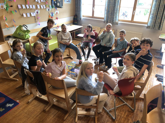 In den Herbstmonaten geht es besonders um das Thema "Dankbarkeit". Wir hören vom Hl. Franziskus, der die Natur und die Tiere liebt, schreiben eine eigene Strophe des Sonnengesangs, teilen miteinander Äpfel und lernen neue Lieder.