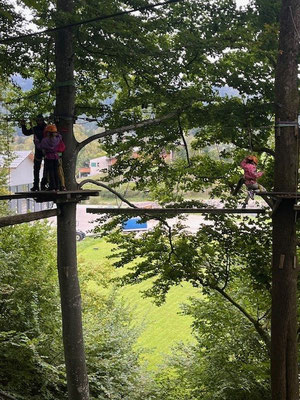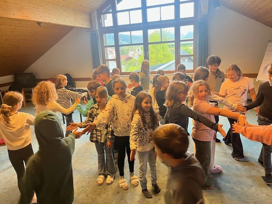 In Kleingruppen wurden aus Naturmaterialien und mit viel Phantasie Kunstwerke gestaltet. Mit Ausdauer und Eifer beteiligten sich alle an der Arbeit. Am Ende war jede Gruppe zu Recht stolz auf ihr entstandenes Werk.